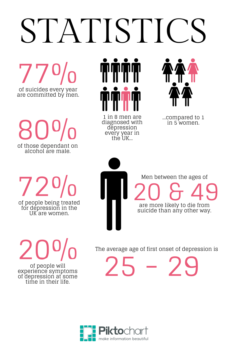 the WHO pointed out, that the economical losses caused by depression amounted to one trillion U.S. dollars per year, because those who are diagnosed couldn’t have the energies to go to work, or to carry on in the activities they usually would enjoy, causing the decline in productivity. Dr. Zimm of health and economics of WHO said, “Depression is one of the major causes of how someone becomes totally incapacitated, and it’s the sole cause of someone losing ability to function from day to day.” There are about 800,000 individuals diagnosed with depression who’s committed suicide every year. “In the countries with a high earning, males outnumbered females, and in the lower earning countries, the women outnumbered the men.”